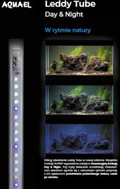 Светодиодный модуль LEDDY TUBE 10W SUNNY D&N предназначен для освещения пресноводных аквариумов. Содержит тщательно подобранные светодиоды, которые обеспечивают идеальное освещение аквариума, гарантируя прекрасные условия жизни его обитателей. Может устанавливаться в плафоны и лампы Aquael. LEDDY TUBE SUNNY DAY&NIGHT – в ритме природы! Правильно подобранные светодиоды являются основным источником света в современных аквариумах. Они эффективно заменили на рынке ранее использовавшиеся люминесцентные лампы, лампы накаливания и компактные люминесцентные лампы. По сравнению с ними они имеют ряд преимуществ. Они позволяют значительно сократить потребление электроэнергии, поскольку, производя столько же света, сколько люминесцентные лампы, они потребляют до половины энергии. Это приводит к снижению счетов за электроэнергию, что выгодно для кошелька аквариумиста, а также способствует защите окружающей среды. Их не нужно часто менять, поскольку они могут работать до 15 000 часов. часов, что опять же означает значительную экономию денег, защиту окружающей среды и сокращение объема работы. Они не нагревают воду в аквариуме без необходимости, светят только на поверхность воды (поэтому нет необходимости использовать дополнительные отражатели), и в отличие от традиционных люминесцентных ламп имеют двухлетнюю гарантию производителя.