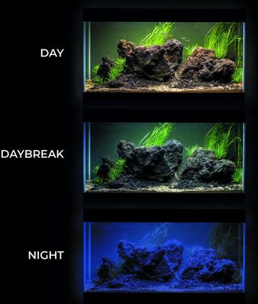 Светодиодный модуль LEDDY TUBE 10W SUNNY D&N оснащен функцией «День/Ночь». Работает в трех режимах работы: ДЕНЬ/РАСВЕТ/НОЧЬ. DAY – основной и самый сильный свет для освещения аквариума в течение дня. DAYBREAK означает снижение мощности дневного освещения до 50% плюс синий свет. Хорошо работает как первый режим после ночи и при кормлении рыбы – особенно если у вас пугливый поголовье. NIGHT — это голубое свечение, позволяющее наблюдать за аквариумом после наступления темноты, в том числе за ночными рыбами и животными. Освещение Day&Night красиво подчеркнет обустройство в аквариуме как днем, так и ночью, а также сделает более уютным интерьер помещения, где находится аквариум. Изменение режима работы ДЕНЬ/РАСВЕ/НОЧЬ происходит после выключения и включения модуля с помощью выключателя в течение не более 5 секунд. Переход непосредственно в режим ДЕНЬ происходит после выключения модуля на период более 5 секунд и повторного включения.