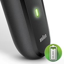 Две мощные NiMH-аккумуляторные батареи с технологией быстрой зарядки. Всего 5 минут зарядки достаточно, чтобы приступить к бритью.