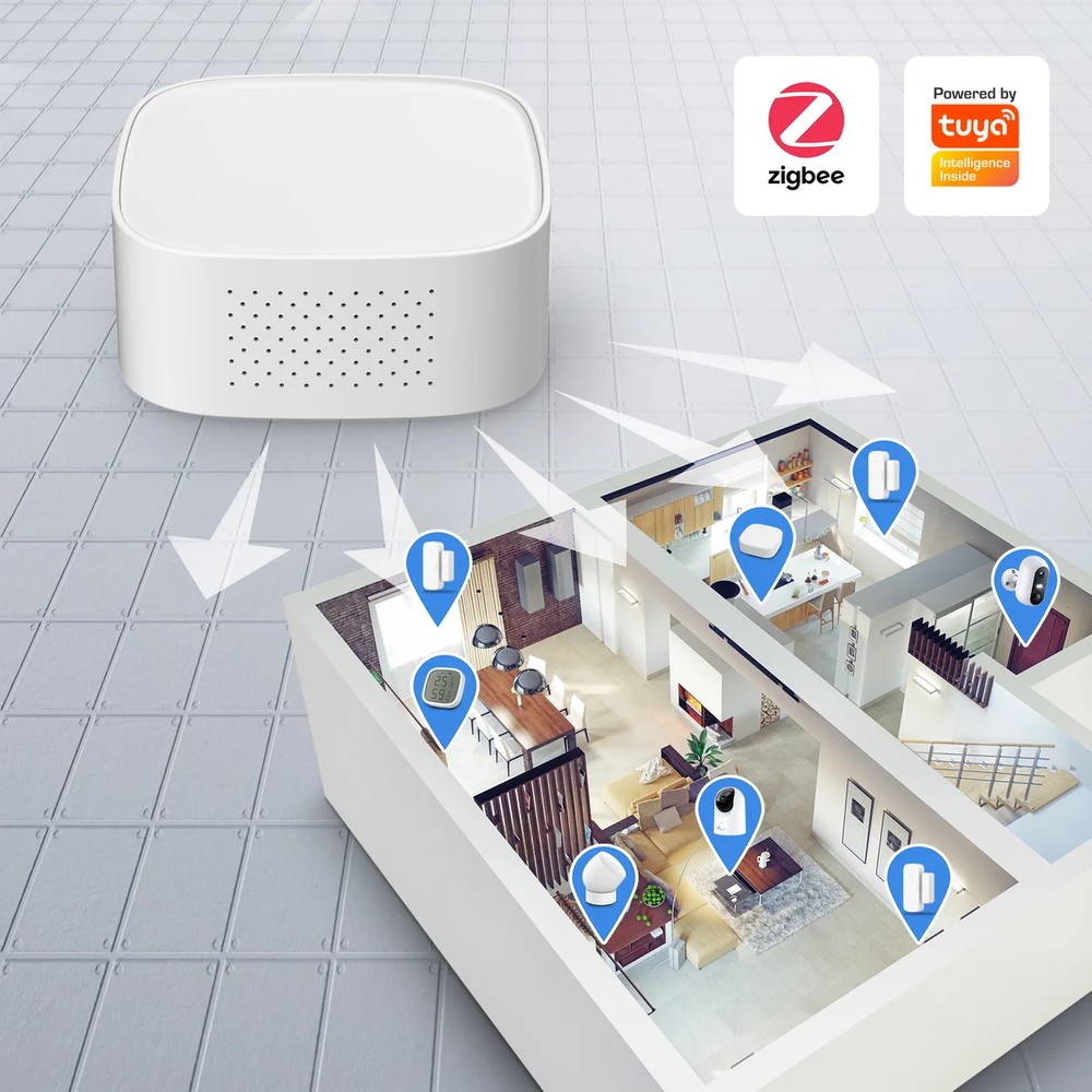 Многофункциональный шлюз Extralink Smart Life — это аппаратное устройство, которое выступает в качестве центра связи для интеллектуальных датчиков и устройств у вас дома, на рабочем месте или в небольшом магазине. Устройство подключается к облаку через Wi-Fi, а к подчиненным устройствам — через ZigBee. Он имеет много возможностей, в том числе: Дверной звонок, ночник, звуковая и световая сигнализация. Управлять устройством можно удаленно с помощью мобильного приложения Tuya. Благодаря многофункциональному шлюзу Extralink Smart Life и набору датчиков вы сможете наслаждаться умным и безопасным домом.