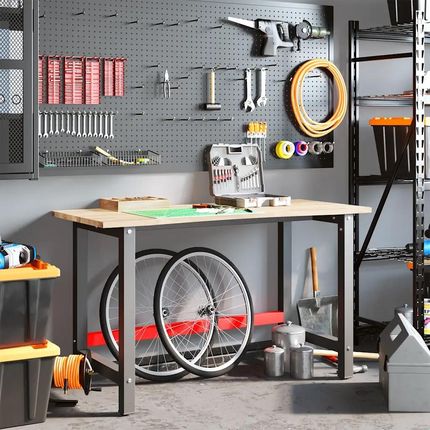 Верстак — идеальный помощник, когда вы хотите завершить ремонтные работы или завершить свои проекты своими руками. Прочный и стабильный материал: массив дуба известен своей прочностью, долговечностью и красивой текстурой, что делает его идеальным для изготовления прочной мебели. Естественная устойчивость к насекомым и грибкам делает дубовую мебель привлекательной и функциональной на долгие годы. Стабильный и долговечный каркас: каркас из металла с порошковым покрытием прочен, стабилен и устойчив к ржавчине и сложным погодным условиям, что гарантирует длительный срок использования. . Большая рабочая зона: рабочий стол представляет собой большое рабочее пространство, в котором можно разместить дрели, кабельные катушки и другие принадлежности для инструментов. Универсальное использование: отличается простотой. Благодаря аккуратному дизайну стол можно использовать как столик для инструментов или рабочий стол, в зависимости от ваших потребностей. Этот помощник задуман как практичный и удобный предмет мебели.