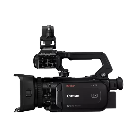 Небольшая камера Canon XA75 позволяет записывать видео высокого качества в разрешении 4K UHD. В дополнение к таким функциям, как исключительное качество обработки HD с передискретизацией, технология Dual Pixel CMOS AF, объектив Canon с 15-кратным оптическим зумом и прямая трансляция HD в стандарте UVC1, при подключении к разъему USB-C на компьютере возможность записи отснятый материал в высоком разрешении в формате XF-AVC или MP4.