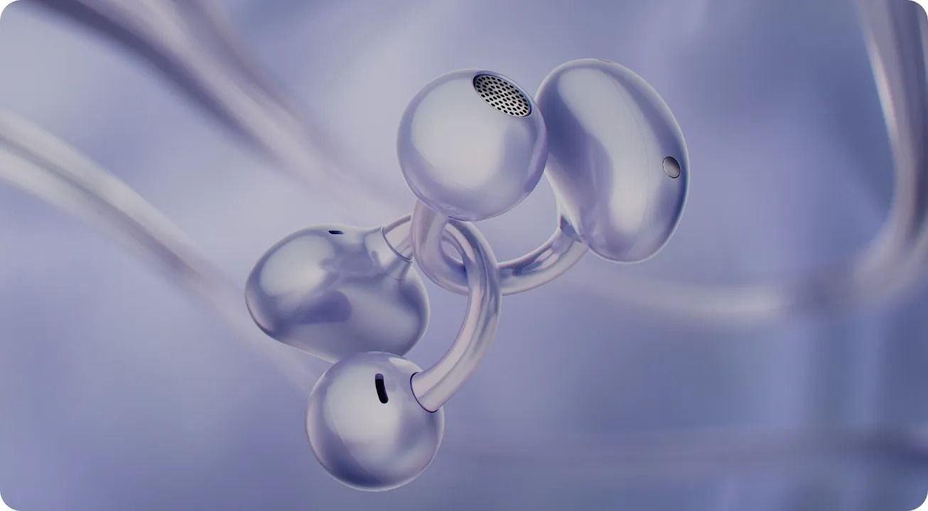 Навушники дивують своєю стильною округлою формою. Ергономічний дизайн робить їх зручними та легкими, як пір'їнка. Кожен навушник важить лише 5,6 г3. Відкрита конструкція вкладишів усуває надмірний тиск на вуха та дозволяє їм дихати, а стійке термопластичне поліуретанове покриття забезпечує використання без відбитків пальців.