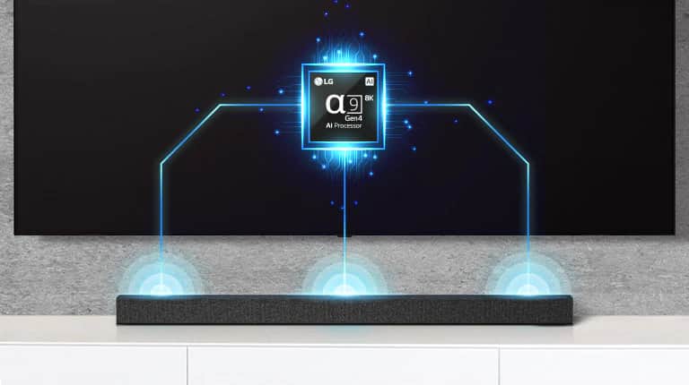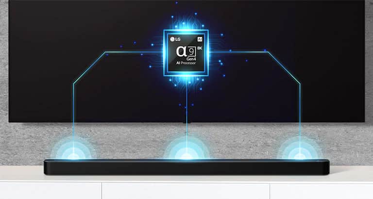 Оновлені у 2021 році процесори штучного інтелекту α9 і α7 допомагають отримати ще кращий звук із звукових панелей LG. Режим оптимізації звуку за допомогою штучного інтелекту під назвою TV Sound Mode Share дозволяє використовувати потужність вбудованого процесора телевізора та можливості технології AI Sound Pro, щоб усі звукові доріжки звучали однаково чітко та чітко, незалежно від джерела. Тільки звукова панель LG у поєднанні з телевізором LG дозволить вам насолоджуватися телебаченням у найкращому вигляді.
