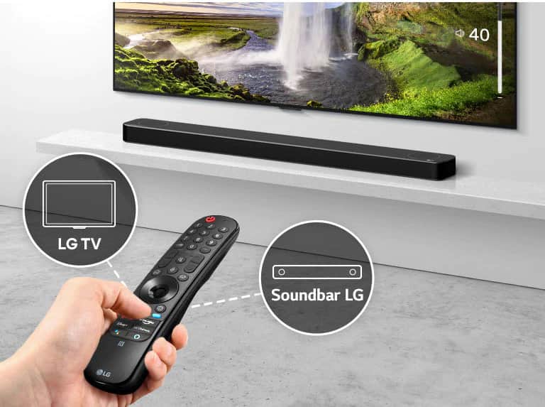 Використовуйте всі доступні функції, створені для максимальної сумісності. За допомогою одного пульта дистанційного керування телевізором LG ви можете керувати живленням, гучністю та навіть звуковими режимами звукової панелі – це максимальна зручність.