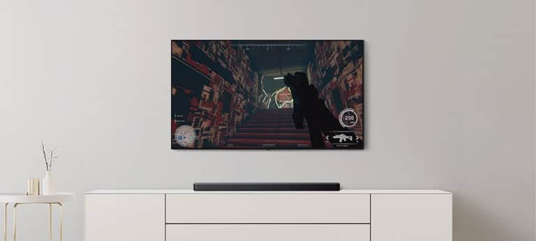 Захоплююча потужність звуку Dolby на звуковій панелі LG із телевізором LG