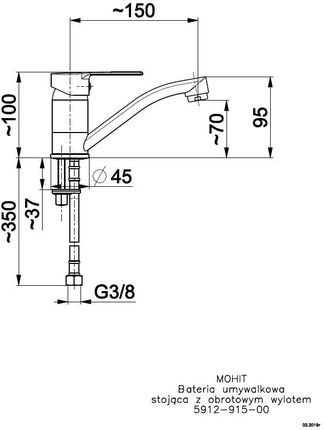 Технічні дані Монтаж: на 1 отвірТип: стоячийМатеріал: латунь Елемент керування: керамічний регулятор Ø35Возлив: поворотний Довжина вилива [мм]: 150Аератор: єПотік води [л/хв]: 12Робочий тиск [атм]:N 3Робоча температура до ['C]: ≤90˚ Група акустична: II