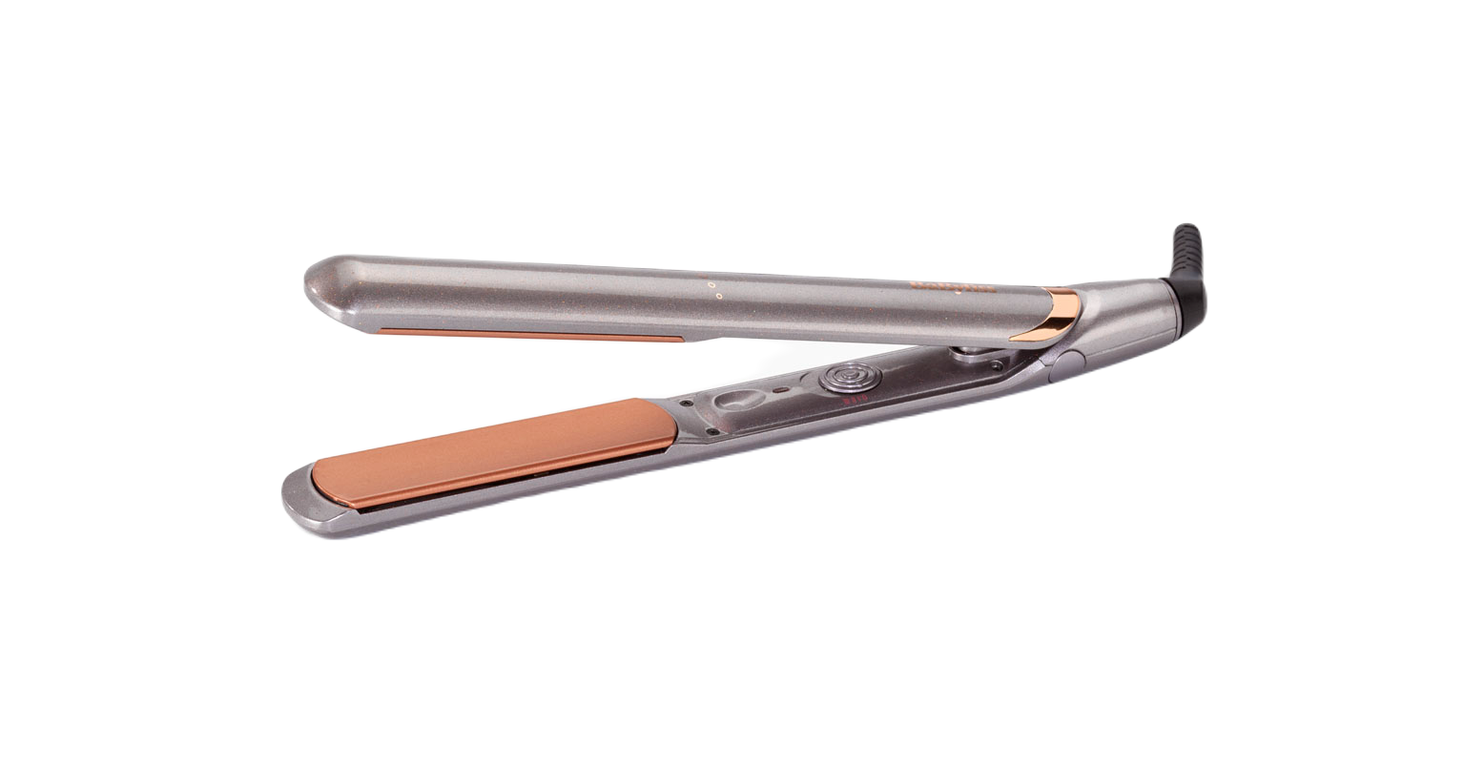 Модель Elegance від BaByliss має рухливі керамічні пластини, які завдяки своєму покриттю легко ковзають по волоссю, не завдаючи шкоди структурі волосся. Ширина пластини 28 мм. Прилад має довгий поворотний шнур
