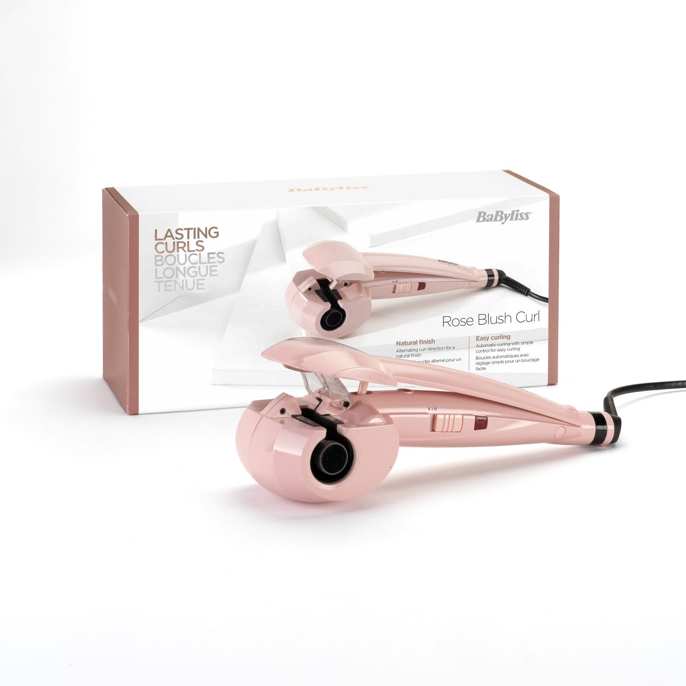 Наша автоматична плойка Rose Blush Curl має революційну технологію, яка автоматично створює ідеальні кучері. Волосся обережно втягується в керамічну камеру, а потім обережно нагрівається з усіх боків для створення довготривалих красивих локонів. Змінює напрямок локонів для природного вигляду.