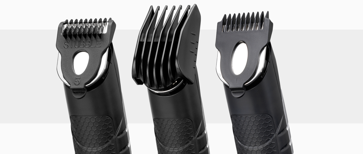 Набір містить прості у використанні насадки-гребінці, які дозволять вам точно укласти бороду та волосся на обличчі: - 5-позиційний гребінець для бороди (2, 4, 6, 8, 10 мм) - 3 щелепні гребінці (3 , 5, 7 мм) - 5 гребінців для бороди (0,5, 0,7, 0,9, 1,1, 1,3 мм).