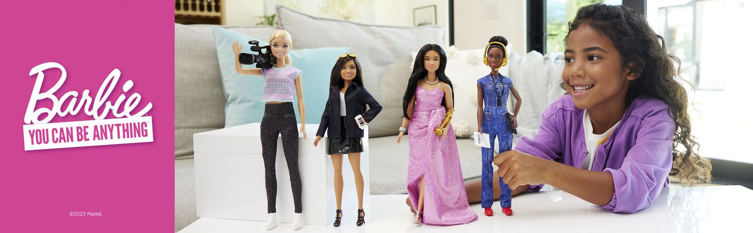 Барбі® виконала понад 250 професій, і цей набір «Жінки в кінокар’єрі року» включає 4 з них.