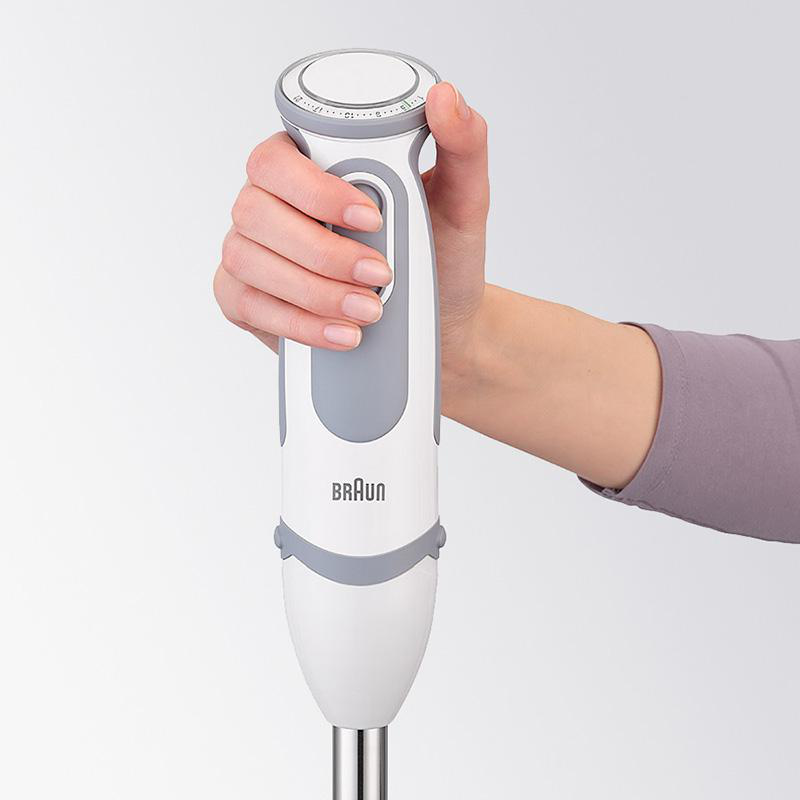 Ручний блендер Braun оснащений потужним високоякісним двигуном. Його ергономічна форма розроблена для роботи однією рукою без надмірної вібрації та шуму. Насолоджуйтесь максимальною точністю та потужністю 1000 Вт у вашій долоні!