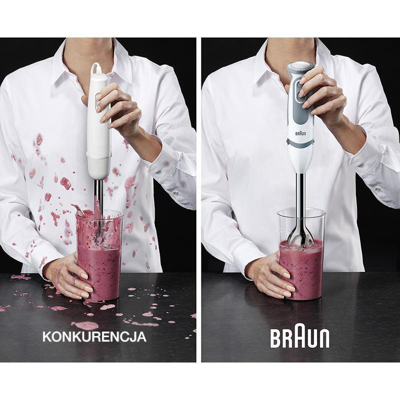Усі ручні блендери Braun MultiQuick оснащені технологією SplashControl. Завдяки унікальній формі ніжки блендера, контур якої протилежний напрямку лез, технологія SplashControl забезпечує найкращі результати без безладу. Змішуйте як тверді, так і рідкі інгредієнти, не турбуючись про бризки вашої кухні.