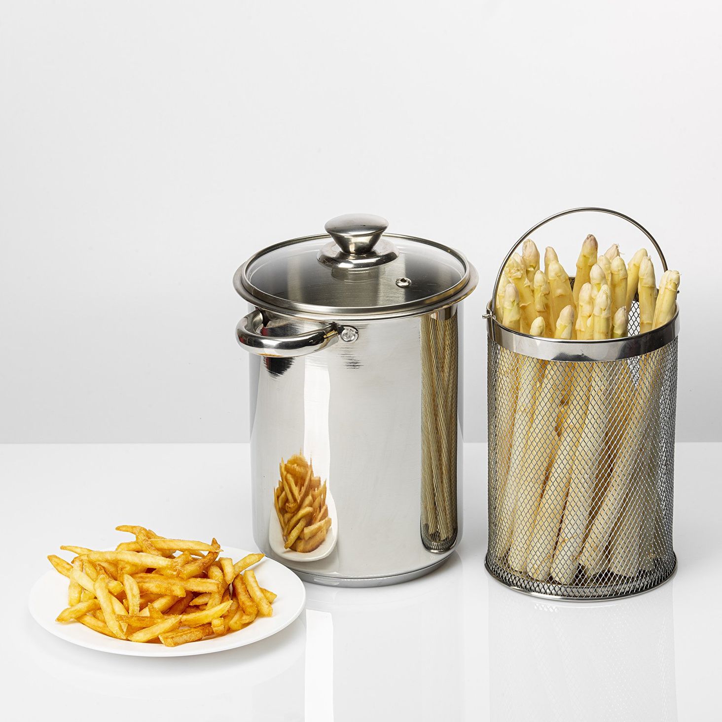 Каструля з нержавіючої сталі зі скляною кришкою, ручками на клепах і кошиком чудово доповнить шинковарку 0,8 кг і 1,5 кг. Корзина з ручками з нержавіючої сталі, що входить у комплект, також дозволить вам зручно готувати та зціджувати овочі та макарони, а також смажити картоплю фрі! Каструля також ідеально підходить для приготування спаржі у вертикальному положенні без необхідності її зав’язувати. Виготовлена з високоякісної нержавіючої сталі, оснащена кришкою із загартованого скла з отвором для випуску пари. Перед першим використанням всі компоненти набору необхідно ретельно вимити в теплій воді або в посудомийній машині, а потім ретельно висушити.