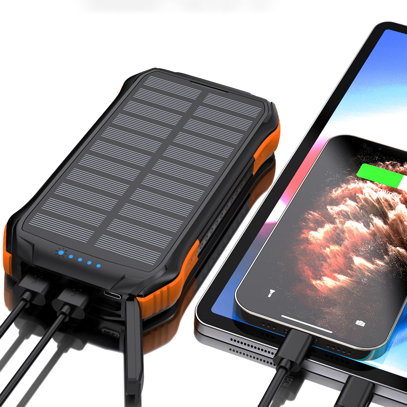 Павербанк Choetech solarny z ładowaniem indukcyjnym 20000mAh PD 20W / QC 18W / Qi 10W pomarańczowy (B657), фото 1