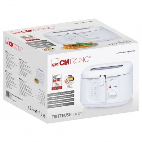 Завдяки об'єму 2,5 літра ви можете швидко приготувати велику кількість смаженої їжі для всієї родини. Контейнер фритюрниці покритий антипригарним покриттям оглядове вікно в кришці, ми можемо контролювати процес смаження, не відкриваючи прилад. Кришка також оснащена фільтром, який зменшує вплив смаження навколишнього середовища. Розміри фритюрниці (прибл. ширина x висота x глибина) і вага пристрою: 300 x 215 x 300 мм; 2 кгУпаковка: 331 x 230 x 313 мм; 2,5 кг. Продукт отримав сертифікат FOCUS - TEST DEUTSCHLANDS BESTE. Сертифікат TEST DEUTSCHLANDS BESTE було присуджено на основі досліджень, проведених компанією «Germanys best побутової електроніки». У тесті порівнювали продукти понад 20 000 брендів із 274 сегментів ринку. Мета відзнаки «Фокус» — вказати продукти, які користуються найбільшим визнанням серед споживачів. Сертифікат надається на основі дослідження німецького ринку та підтверджує високу якість продукції та доводить високу довіру споживачів та репутацію бренду.