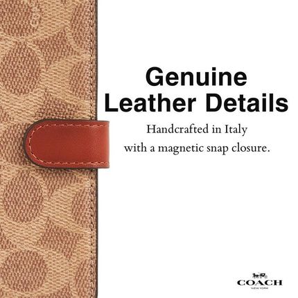 Гаманець Coach Folio Signature C Case з оригінального італійського полотна з підписом бренду Coach. Цей елегантний і функціональний чохол пропонує стильний вигляд і практичні рішення. Чохол має три вбудовані кишені для платіжних карток, посвідчення особи або водійських прав і додаткове місце для готівки, що робить його ідеальним для щоденного використання. Знімний внутрішній чохол дозволяє вибирати між Wallet і Hardcase відповідно до ваших поточних потреб.