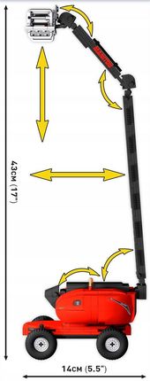 Manitou 280TJ — це універсальний і надійний телескопічний підйомник, який поєднує в собі передові технології, високу ефективність і безпеку. Це ідеальне обладнання для ефективної роботи на великій висоті, забезпечуючи при цьому комфорт і безпеку операторів. Реалістична блочна модель має поворотні колеса, корпус, що обертається, і довгу підйомну руку з кошиком, конструкція якої заснована на петлях і телескопі. Ви можете підняти їх на висоту до 43 см! Ви можете покласти в кошик фігурку висотника в шоломі! Manitou відкриває нову серію будівельних машин у COBI?