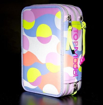 Рюкзак доповнює потрійний пенал із великим модельним мотивом на фіолетовому лицьовому боці та модним графічним малюнком із світловідбиваючого матеріалу збоку та ззаду. Із застібкою-блискавкою неонового кольору та трьома окремими відділеннями, повністю укомплектованими кольоровими та фломастерами, олівцями, точилкою, гумкою, лінійкою, ножицями та клеєм, цей пенал одночасно стильний і функціональний. Матеріал: 100% PES (рюкзак і пенал)