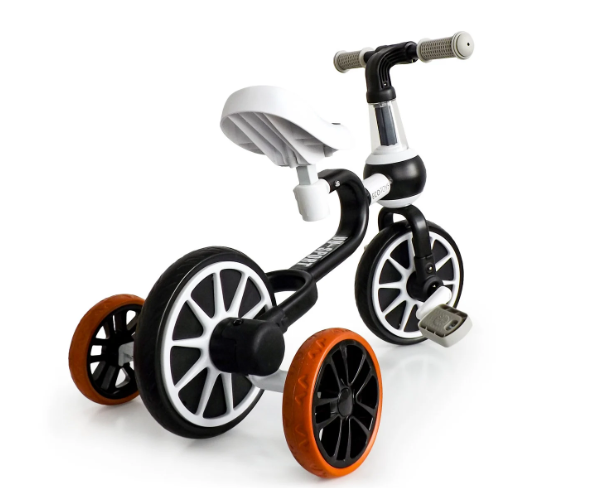 Для дітей від двох років Росте разом з дитиною - 4 варіанти катання_x000D_ Легка та міцна конструкція Безпечна для дітей Навчає правильному балансуванню та утриманню рівноваги Знімні педалі та бічні колеса Регульована висота сідла_x000D_ Кермо з протиковзкими ручками Чорно-білий колір