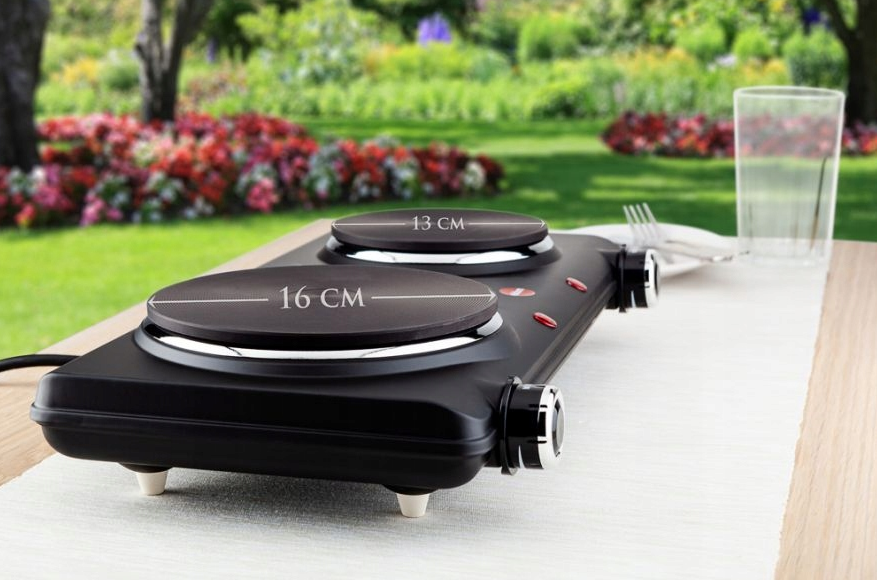 Сучасна туристична піч ELDOM PG20N - чудове рішення для всіх людей, які цінують комфорт приготування власної їжі. Виріб дуже потужне, тому відносно швидко нагрівається. Він оснащений нековзкими ніжками. Таким чином він ідеально прилипає до будь-якої плоскої поверхні, на яку його кладуть. Кемпінгова плита ELDOM доступна в чорному виконанні з двома зонами приготування, ручками і контрольними лампочками. Виглядає елегантно і невеликий. Електрична піч для кемпінгу – чудове рішення, де у вас є доступ до електрики. Він ідеально підходить як для тимчасового використання вдома, так і під час різних поїздок, коли у вас немає доступу до традиційної кухні. Ви думаєте, як вибрати ідеальний пристрій для подорожей для двох? Похідна піч з двома конфорками - продукт, який ідеально підходить для таких умов. Великий діаметр тарілок дозволяє готувати різні страви, в тому числі по дві одночасно.
