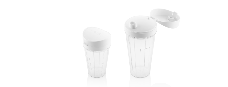 З Blendic Premium II ви отримаєте 2 портативні пляшки ємністю 0,7 л і 0,5 л, виготовлені з тритану. Цей матеріал не вбирає запахи і смаки приготованих в ньому страв. Також є можливість придбати додаткові пляшки ємністю 0,7 л ETA401193000 та 0,5 л ETA401194000.