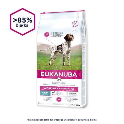 Корм собачий Eukanuba Daily Care Working & Endurance dla dorosłych psów aktywnych i pracujących oraz dla suk karmiących 2x15kgКорм собачий Eukanuba Daily Care Working & Endurance dla dorosłych psów aktywnych i pracujących oraz dla suk karmiących 2x15kg