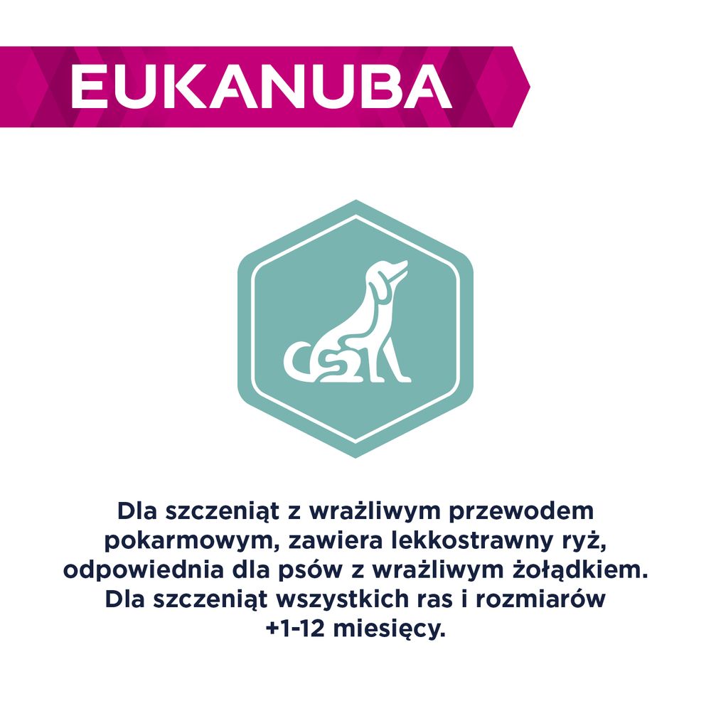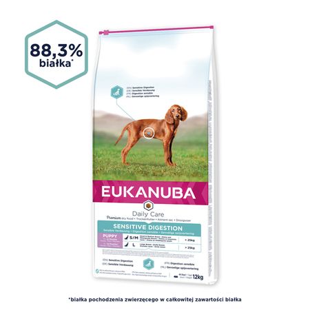 Корм собачий Eukanuba Daily Care Puppy Sensitive Digestion dla szczeniąt z wrażliwym przewodem pokarmowym 12KgКорм собачий Eukanuba Daily Care Puppy Sensitive Digestion dla szczeniąt z wrażliwym przewodem pokarmowym 12Kg