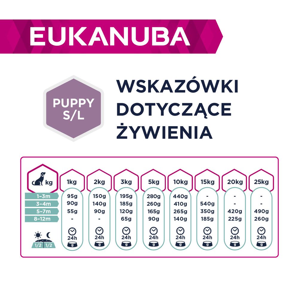 Сухий корм EUKANUBA Daily Care зі свіжою куркою для цуценят з чутливим шлунково-кишковим трактом був розроблений спеціально для собак з ніжним шлунком. Завдяки наявності легкозасвоюваного рису корм є альтернативою для цуценят з особливими потребами в харчуванні. Їжа підтримує природний баланс кишкової мікрофлори та оптимізує засвоєння поживних речовин. Пребіотики FOS і MOS, бутират натрію і буряковий жом сприяють правильному травленню. Натуральні джерела кислот Омега-6 і Омега-3, що містяться в їжі, позитивно впливають на здоров'я шкіри і хутра, а кальцій сприяє розвитку міцних кісток. Важливим інгредієнтом їжі є DHA кислота. Ця поліненасичена жирна кислота особливо важлива на першому етапі життя цуценя, оскільки вона стимулює його здоровий розвиток і позитивно впливає на його здатність до навчання. EUKANUBA Daily Care для цуценят з чутливим травним трактом - це 100% повнораціонний і збалансований сухий корм, призначений для цуценят з особливими потребами в харчуванні.