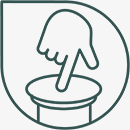 До продуктів із цією піктограмою належать стопор «клік-клак», відкривається та закривається натисканням.