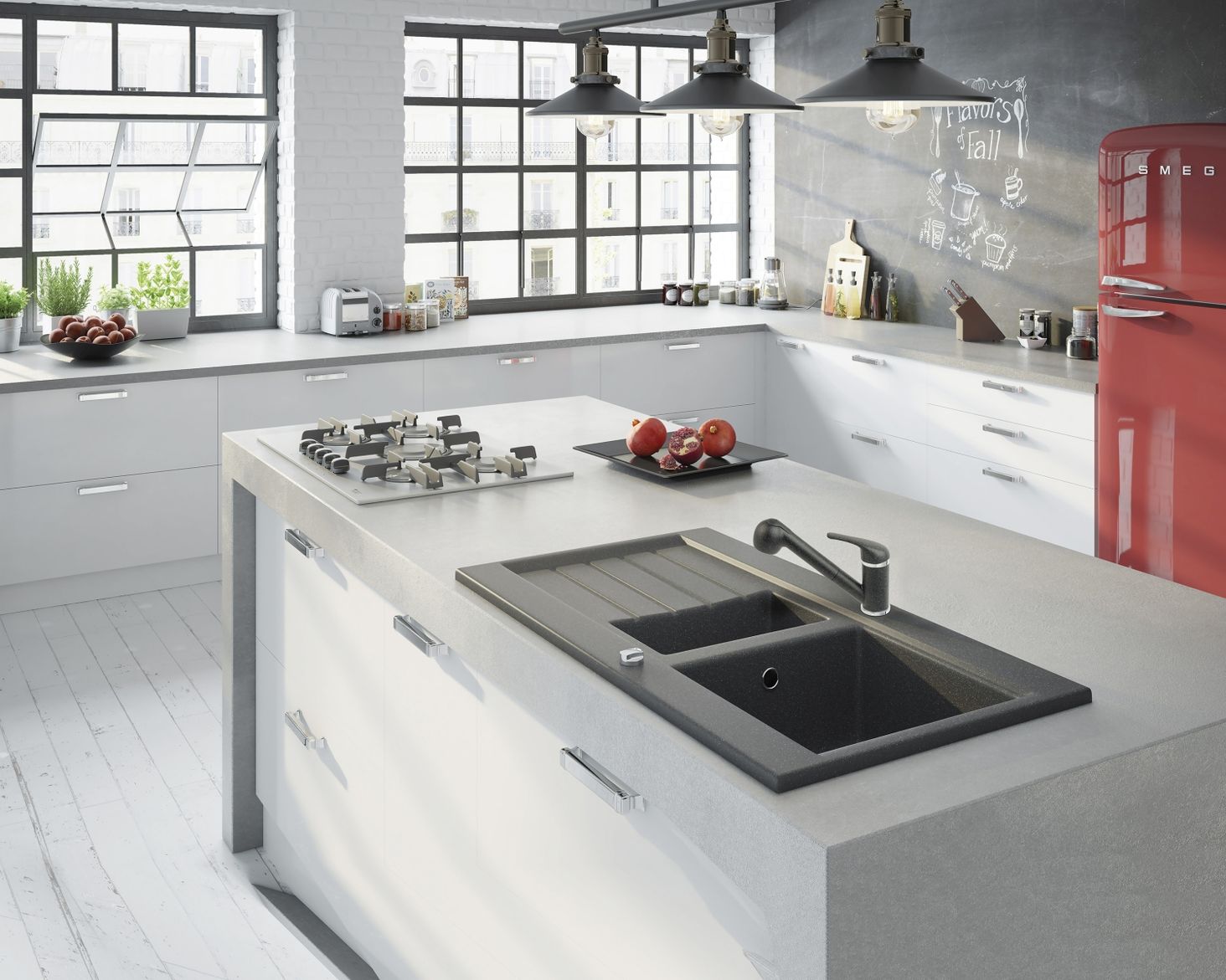 Змішувач із гранітною поверхнею графітового кольору найкраще виглядатиме з гранітною раковиною графітового кольору. Додасть інтер'єру серйозності та елегантності.
