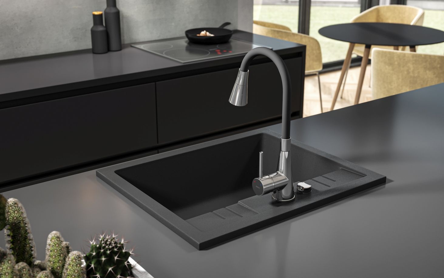 Кухонний змішувач ZUMBA II - це модель зі зручним, гнучким виливом і можливістю легкої зміни струменя, яка чудово виглядає в сучасних кухонних інтер'єрах. Гнучкий носик є надзвичайно корисною функцією для людей, які цінують вільне та зручне використання змішувача. Він дозволяє надати виливу будь-яку форму, змінювати висоту і діапазон струменя води в залежності від ваших потреб, забезпечуючи швидке споліскування посуду або зручне миття раковини.