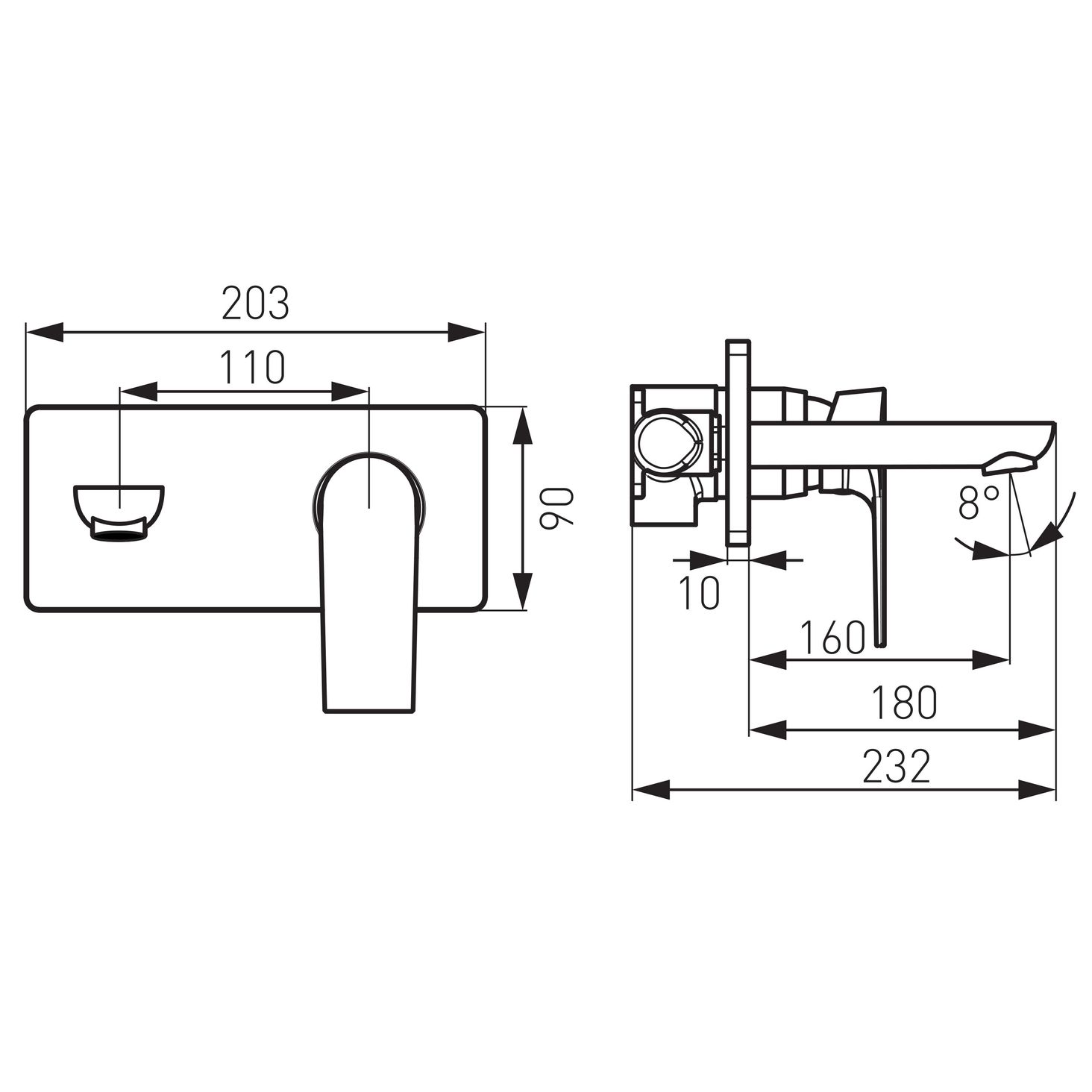 Основна інформація: керамічний регулятор, набір внутрішніх і накладних елементів, настінний монтаж, вилив 180 мм з хромованим аератором M24x1