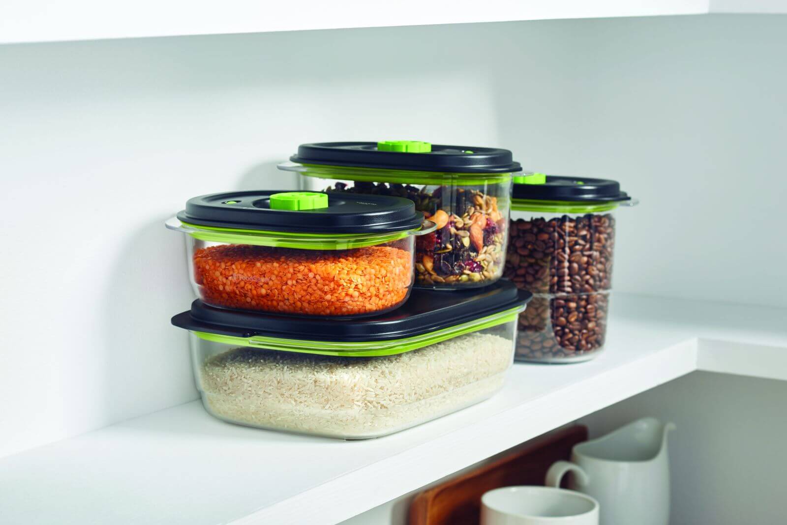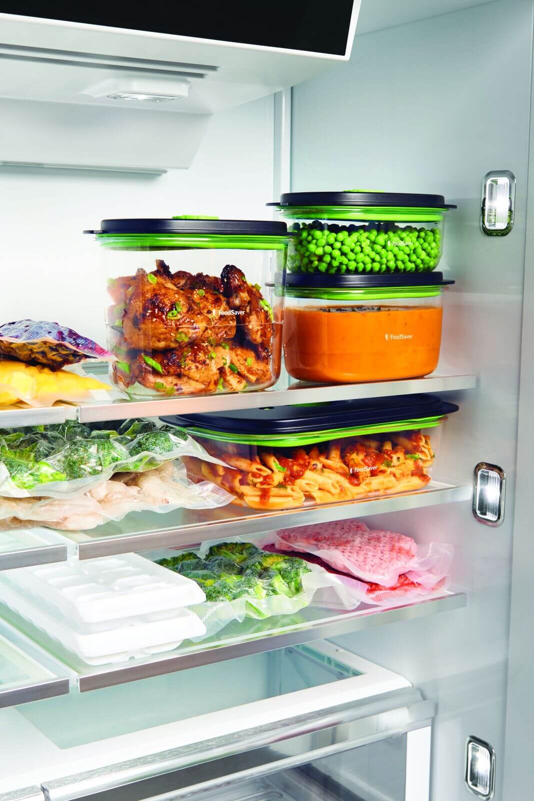 Контейнери FoodSaver® дуже зручні для зберігання. Вставляючи одну ємність в іншу або ставлячи одну ємність на іншу, легше підтримувати порядок на кухні. Контейнери виготовлені з високоякісного матеріалу Tritan™, який є надзвичайно міцним. Контейнери стійкі до тріщин і не змінюють колір. Вони мають міцні ущільнення та гнучку кришку з ручками для легкого відкривання. Контейнери можна мити в посудомийній машині, тому їх легко підтримувати в чистоті. Виготовлені з прозорого матеріалу Tritan™, контейнери герметичні, не містять бісфенолу А та сумісні з усіма вакуумними системами FoodSaver®.