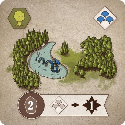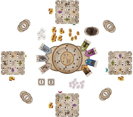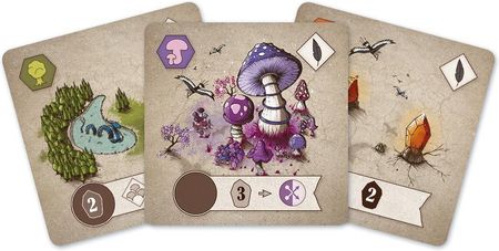 Зробіть свій світ найбагатшим життєвою енергією, щоб виграти гру! Вміст: дошки для 5 гравців ? 1 основна плата? 2 бічні плитки з розетками ? 5 супутникових плиток ? 1 плитка чорної діри ? 45 спорових маркерів ? 80 карт біомів 1-ї та 2-ї ери (65x65 мм) ? 7 плиток божественних істот ? 5 жетонів енергії ? 5 тотемів? 52 кристальні жетони ? 6 +100 жетонів очок