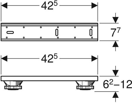 •- без інструментів, регульована висота- для позиціонування, регулювання висоти та фіксації акрилових душових піддонів- регульовані монтажні ніжки • Комплект поставки: - 4 ніжки, регульовані по висоті - 2 поперечини - елементи кріплення - 3 поперечини, звукоізоляція - 2 розпірні кронштейни