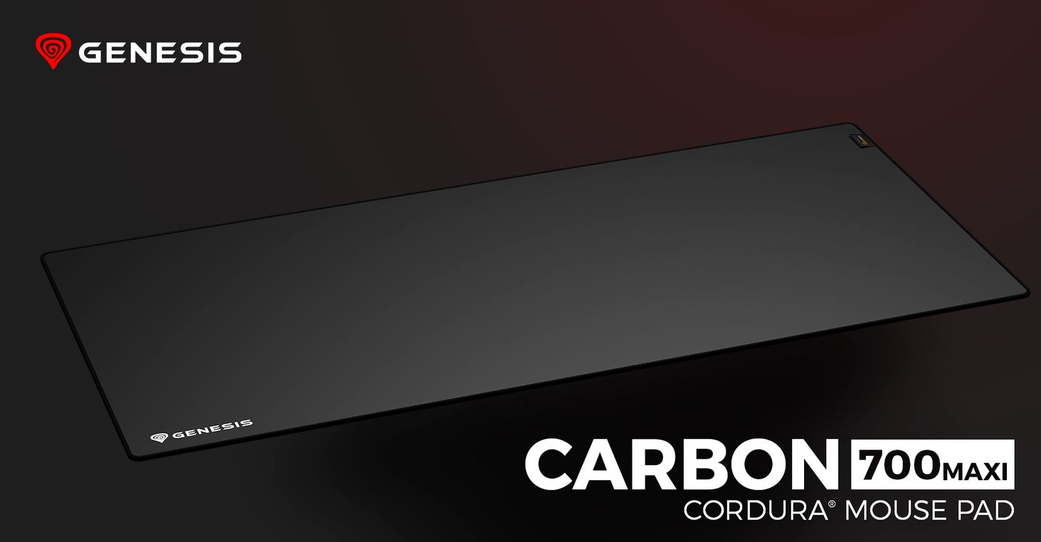 Carbon 700 MAXI — це високоякісний ігровий килимок для миші та клавіатури з великою поверхнею 920 мм x 420 мм. Верхній шар виготовлено з надзвичайно міцного матеріалу Cordura, який стійкий до стирання, пошкоджень, а також до бруду та води.