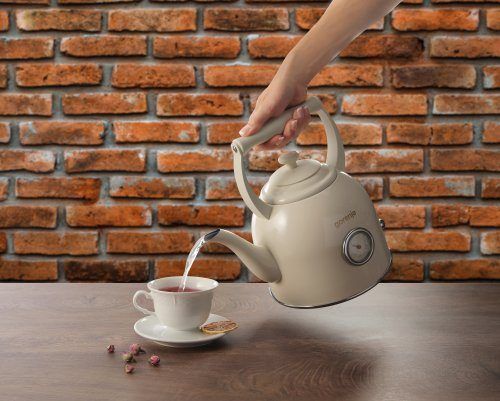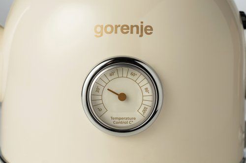 Аналоговий термометр у вінтажному стилі на чайнику полегшує приготування улюбленого напою. Коли вода досягне потрібної температури, вимкніть пристрій і налийте воду на чай або каву.