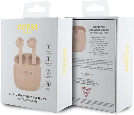 Навушники Bluetooth Guess Classic EST Logo TWS + док-станція - рожеві
