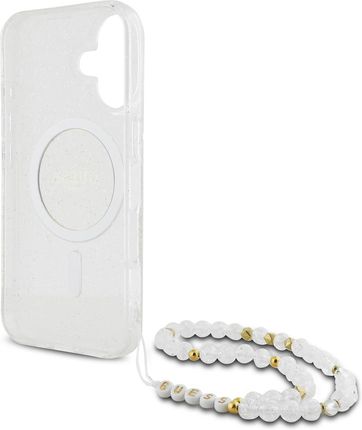 Чохол для телефону Guess Guhmp16Shgcrelst Iphone 16 6 1 Quot Przeźroczysty Transparent Hardcase Iml Glitter With Pearl Strap