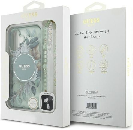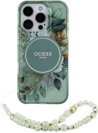 Чохол для телефону Guess Guhmp16Shfwbrcesn Iphone 16 6 1 Quot Green Green Hardcase Iml Flowers With Pearl Strap Magsafe
