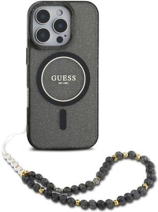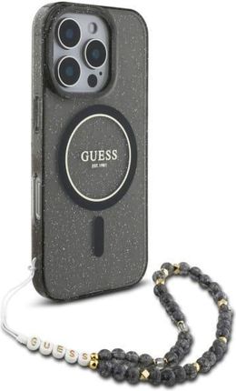 Чохол для телефону Guess Guhmp16Lhgcrelsk Iphone 16 Pro 6 3 Quot Black Hardcase Iml Glitter With Pearl Strap Magsafe