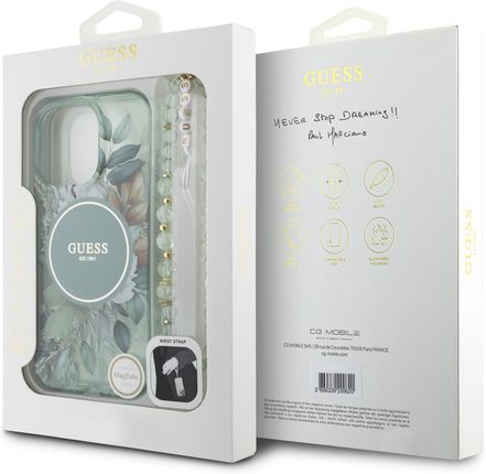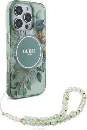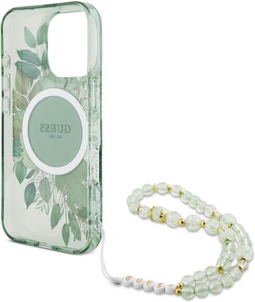 Чохол для телефону Guess Guhmp16Lhfwbrcesn Iphone 16 Pro 6 3 Quot Green Green Hardcase Iml Flowers With Pearl Strap Magsafe