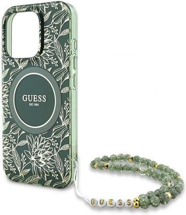 Чохол для телефону Guess Guhmp16Lhcpofpa Iphone 16 Pro 6 3 Green Green Hardcase Iml Flowers Allover Electro With Pearl Strap, фото 1