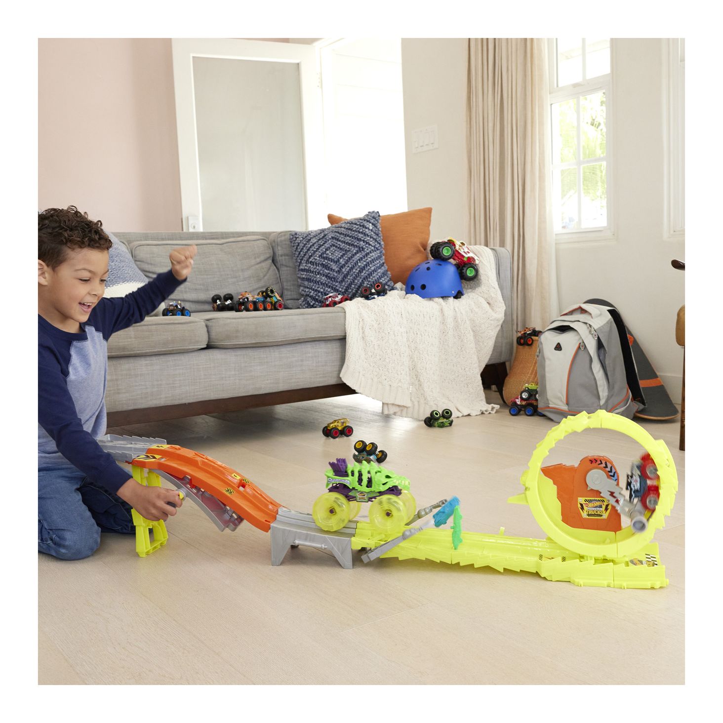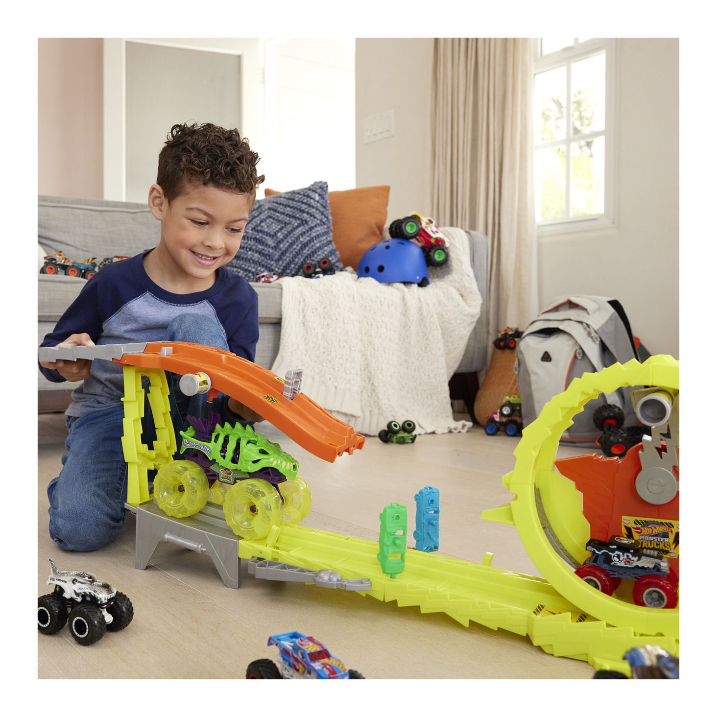 У набір входять 2 вантажівки-монстри — Скелезавр у масштабі 1:24 і Bone Shaker у масштабі 1:64 — і 2 «роздавлювані» машини, які додають задоволення від руйнування.