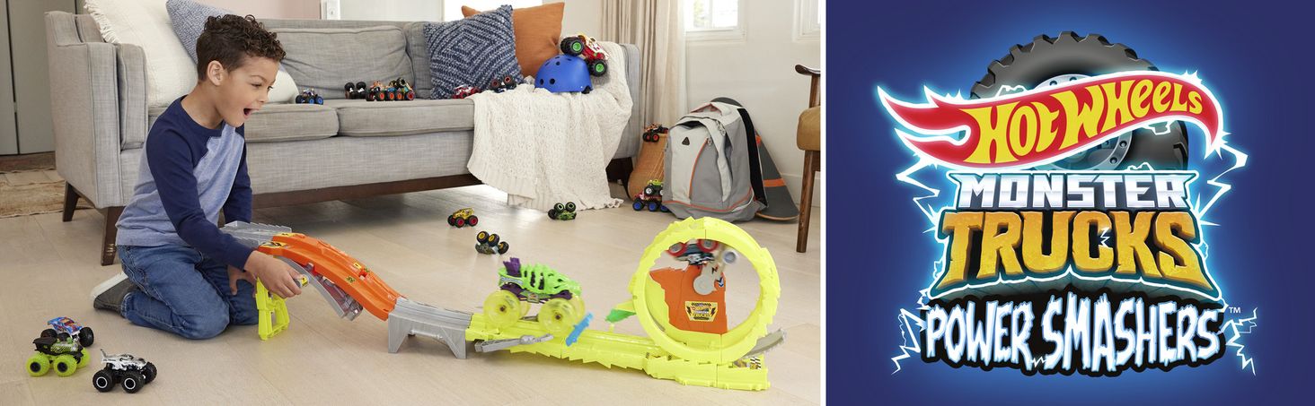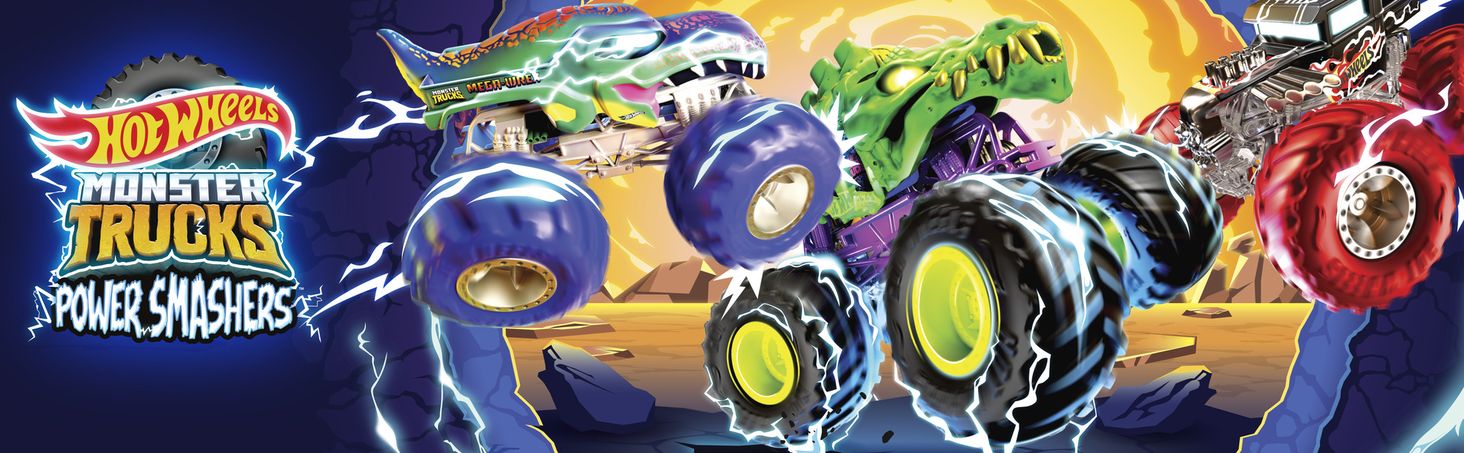 Hot Wheels Power Smashers Ultra Race – набір завдань HXT05Hot Wheels Power Smashers Monster Trucks Ultra Race – набір завдань із 2 транспортних засобів (великого скелезавра та кістяного шейкера в масштабі 1:64) і 2 автомобілів, що розбивають.