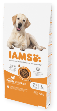 Корм собачий IAMS Advanced Nutrition – sucha karma dla psów ras dużych powyżej 7 lat ze świeżym kurczakiem 12kg