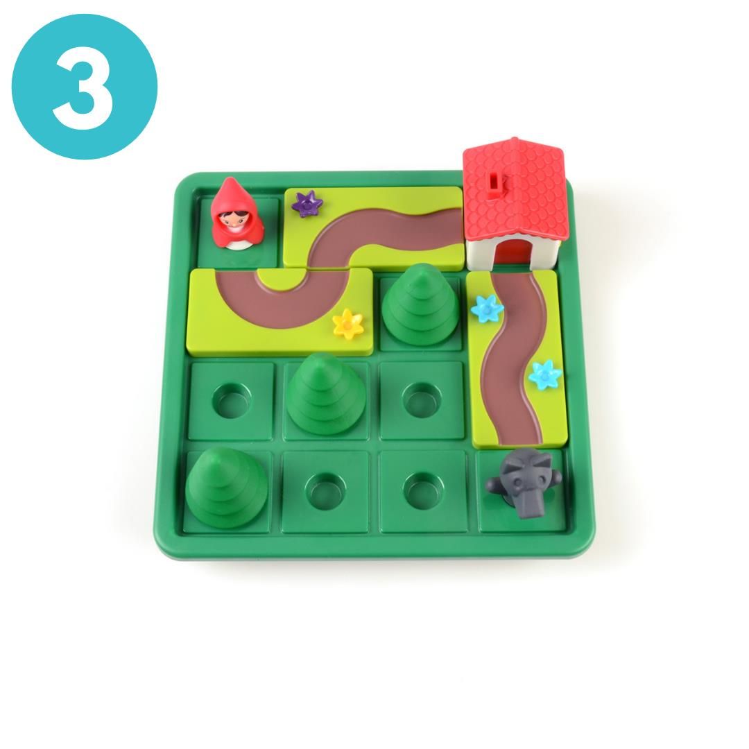У простішому варіанті - без вовка - діти створюють доріжку, яка приведе Червону Шапочку до будинку її бабусі. У більш складному варіанті - з вовком - діти будують дві доріжки, що ведуть до бабусиної хати: одну для Червоної Шапочки, іншу для вовка. У коробці також є буклет з ілюстраціями до казки про Червону Шапочку. Завдяки цьому ви можете розповісти власну версію історії відважної дівчини.