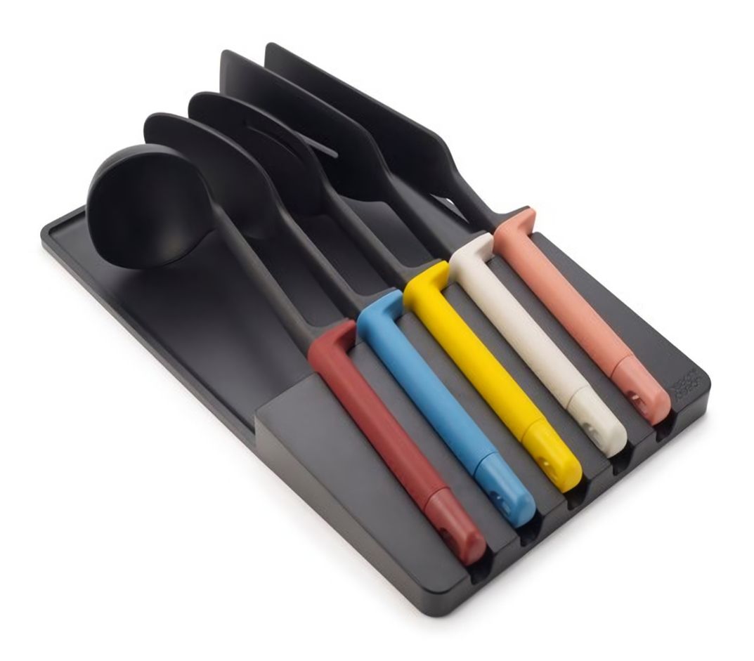 Набір із 5 інструментів із органайзером для ящиків. Багаторазові ручки з обважнювачами - гігієнічне приготування їжі та менше безладу. Інструменти можна мити в посудомийній машині.