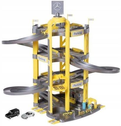 Відкрийте для себе захоплюючий світ автомобільних розваг завдяки багатоповерховій автостоянці, ліцензійній Mercedes-Benz! Цей стильний гараж висотою 68 см пропонує чотири рівні, наповнені атракціонами. Подвійна рампа виїзду є ідеальним місцем для захоплюючих гонок - дві маленькі машини можуть мчати на окремих трасах, а більший транспортний засіб може велично спуститися по широкій смузі. Гараж обладнаний ліфтом, який піднімає автомобілі на верхній поверх, заправкою, автомийкою та двома маленькими автомобілями, які готові до будь-яких пригод. Іграшка не тільки гарантує години захоплюючих розваг, але й розвиває дитячу уяву, просторове мислення та ручні навички.